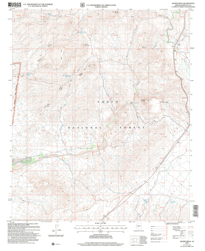 Adams Mesa, Arizona (7.5’×7.5′ Topographic Quadrangle) | Wide